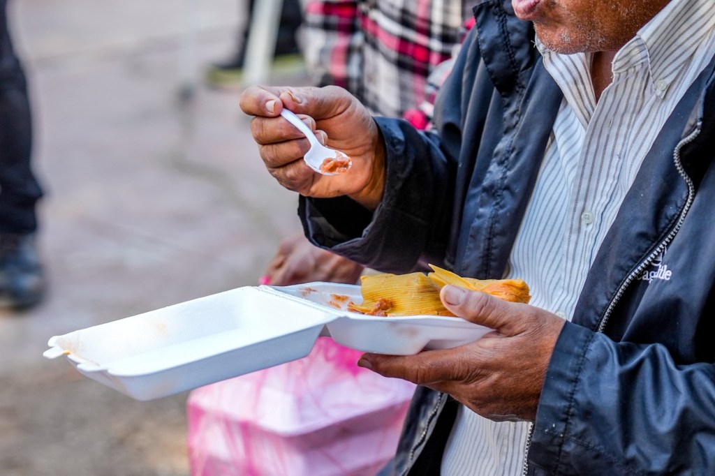 Personas en situación de calle y movilidad humana recibieron un delicioso platillo, compartiendo un momento de alegría y compañía en este día.