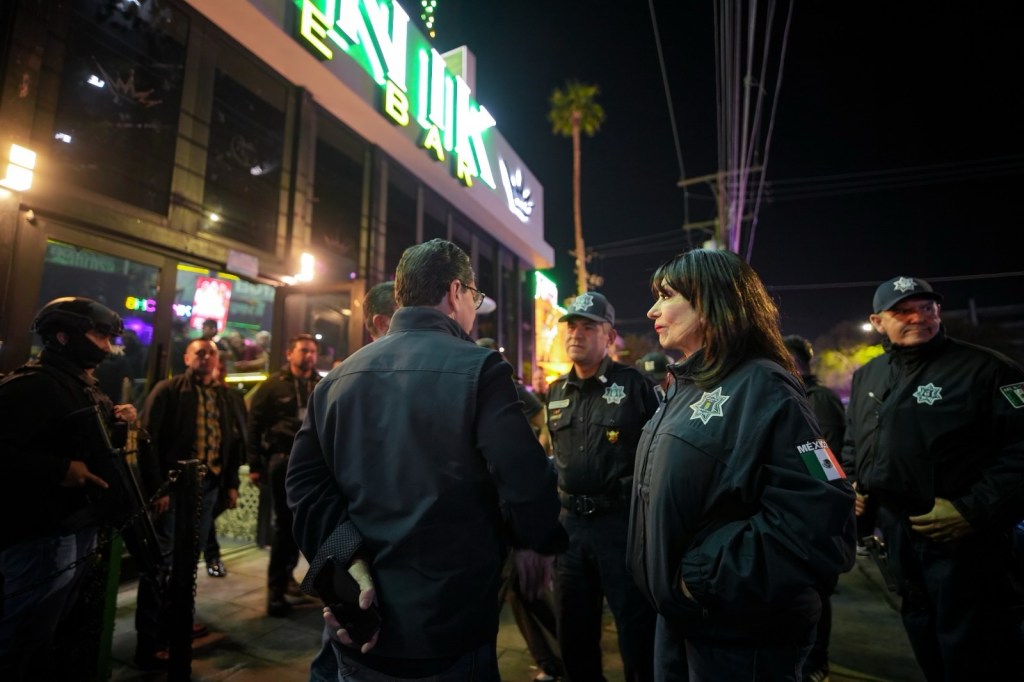 Mexicali B.C. a 2 Marzo 2025.- En un operativo conjunto, elementos de la Dirección de Seguridad Pública Municipal, la Fiscalía General del Estado, la Fuerza Estatal de Seguridad Ciudadana, la Guardia Nacional y el Ejército Mexicano visitaron bares y centros nocturnos ubicados en la zona hotelera de esta ciudad, con el objetivo de garantizar espacios seguros para quienes los frecuentan.