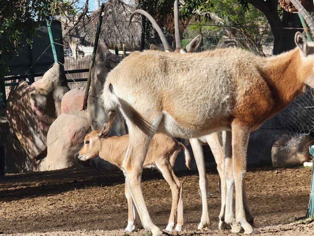 Actualmente, el Bosque y Zoológico de Mexicali alberga un grupo familiar de 4 ejemplares de órix cimitarra. Con la llegada de la primavera, se esperan próximos nacimientos de borrego cimarrón, canguro, animales de granja y otras especies, lo que subraya el cuidado adecuado que se brinda a los animales del recinto.